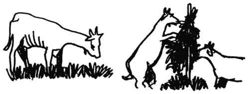 We shall later describe how to grow these trees and how much of the tree fodder has to be fed, either alone or with grasses, to ruminants such as cattle, sheep, goats and buffaloes, and to non-ruminants such as pigs, poultry and rabbits.