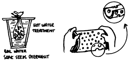 Many fodder tree seeds have hard seed coats that slow down and reduce the germination rate. If you want to get high and rapid germination of planted seeds, you must treat them in one of the ways already described and shown again below.