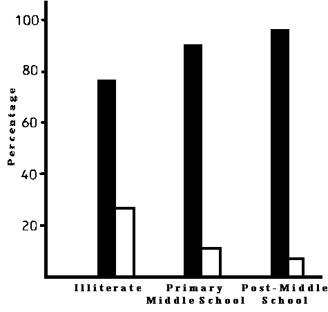 Adu-Tutu, Afful, Asante-Appiah, Lieberman, Hall, and Elvin-Lewis (1979) conducted a detailed study of the market for chewing sticks in southern Ghana. They found that there are four species whose products account for 85% of the total market. Chewing sticks are sold daily in most rural and urban markets. All 837 people that they interviewed used chewing sticks, and preferences for different species varied according to age and ethnic group. Isawumi (1978) notes that there are regional preferences for different species: Massularia acuminata chewsticks are most common in Ogun, Oyo, and Ondo States, whereas Garcinia kola is most popular in Cross River State, Nigeria. However, the main factor affecting peoples choice of chewing stick is availability. Chewing sticks are frequently purchased by rural consumers as well as those living in urban areas: 80% of the rural people interviewed purchase chewing sticks, 95% of urban consumers purchase their chewing sticks (see Figure 1).
