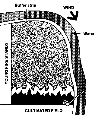 The potential negative effects of prescribed fire on wildlife include destruction of nesting sites and, in rare instances, direct mortality. However, these can be avoided by utilizing appropriate timing and burning techniques. The practice of lighting all sides of a burn area (see section on ring firing, page 35) is a primary cause of animal entrapment and has no place in prescribed burning. It also results in unnecessary tree damage as the flame fronts merge in the interior of the area.