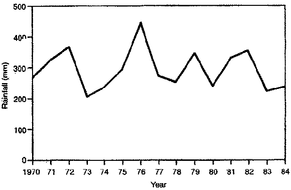 Average annual rainfall, Gezira, 1970-84 - Précipitations moyennes annuelles, Gézireh, 1970-1984 - Precipitación anual media, Gezira, 1970-84