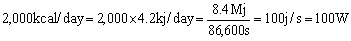 1 day = 24 x 60 x 60 s = 86,400 s 1 cal = 4.2 J