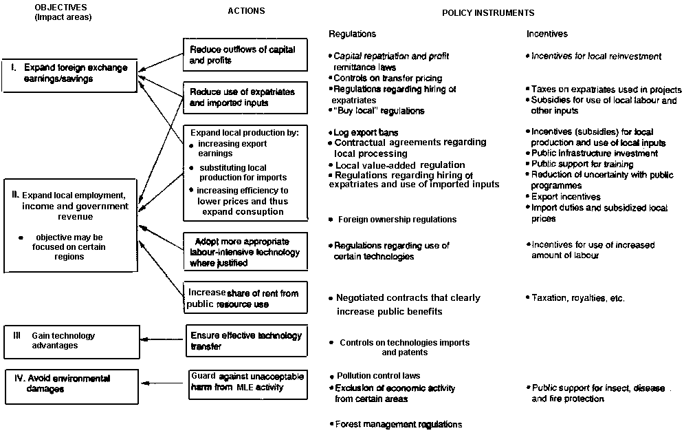 These objectives are displayed in column 1 of Figure 1. So that expanded MLE activity can be used constructively to achieve these objectives without major negative impacts, certain actions need to be undertaken. These are displayed in column 2. Finally, columns 3 and 4 show the policy instruments that governments can use effectively to encourage required actions. The rest of the paper discusses the actions and policy instruments commonly associated with each of the objectives.