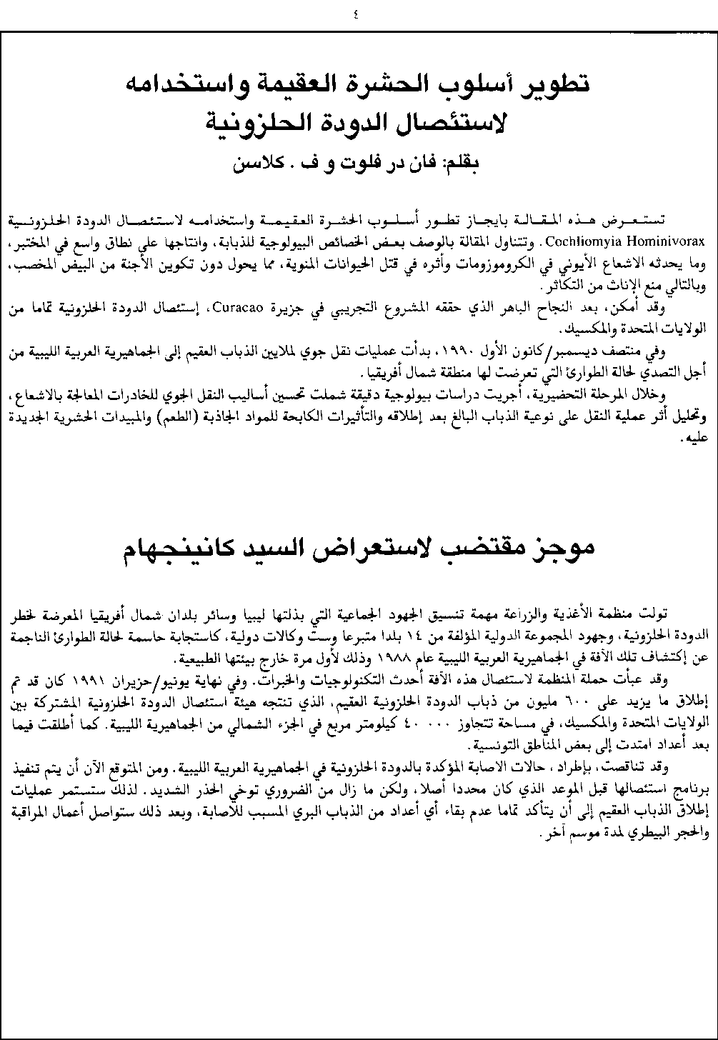 Baumhover, A.H. 1966. Eradication of the screwworm fly - an agent of myiasis. J. Am. Med. Assoc., 196: 240-248.