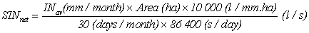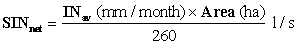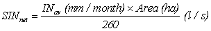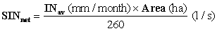 SINnet (l/s) = Area (ha) x INnet (l/s/ha) |