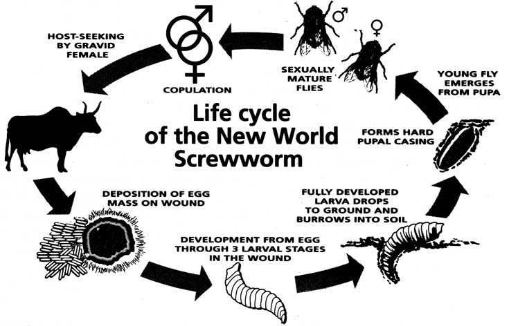Starting with a trial on the island of Curacao in 1952, SIT has been used progressively to clear the United States and Mexico of the New World screwworm, a damaging pest to livestock and also a threat to humans and wildlife. The technique involves the saturation of infested areas with sterile males. After about twelve life cycles, eradication is achieved. Screwworm was discovered in Libya in 1988, and by 1990 had infested an area almost as large as the Netherlands. An internationally-funded programme of eradication was undertaken in 1990 by FAO, and within one season it had accomplished its purpose, thus averting the threat of screwworm spreading through Africa and the possible decimation of the continent's livestock and wildlife. While the technique is costly, it has been shown to be highly effective and advantageous from the environmental point of view. No chemicals are involved, and so no residues are left in the-environment. Furthermore, because of the biology involved and the aim to achieve eradication, no problems of evolving resistance occur.