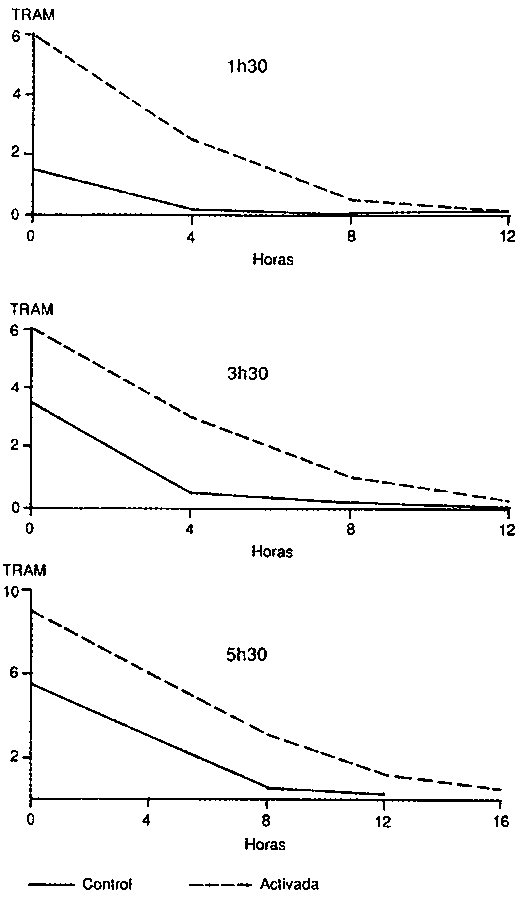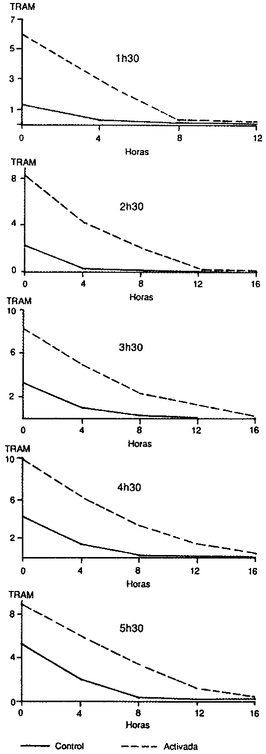 Tiempo de reducción del azul de metileno del sistema lactoperoxidasa a 30°C - Lactoperoxidase system methylene blue reduction time at 30 °C - Temps de réduction au bleu de méthylène du système lactoperoxydase par rapport au témoin a 30 °C