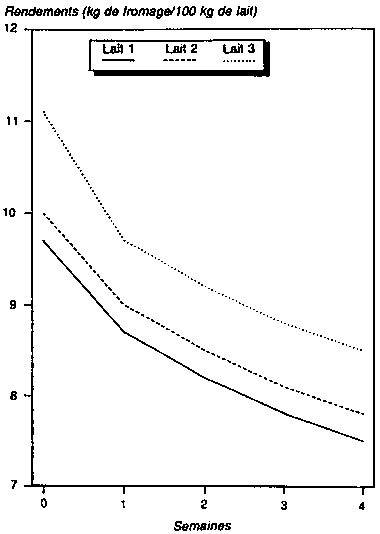 1 Rendements fromagers des différents types de lait au cours des quatre semaines d'affinage