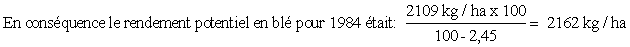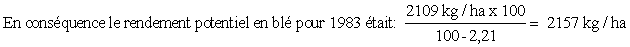 Champs traites (rendement potentiel moins dégâts3) 2 162 kg/ha - 2,88% x 2 162 kg/ha |