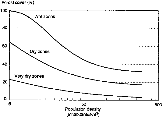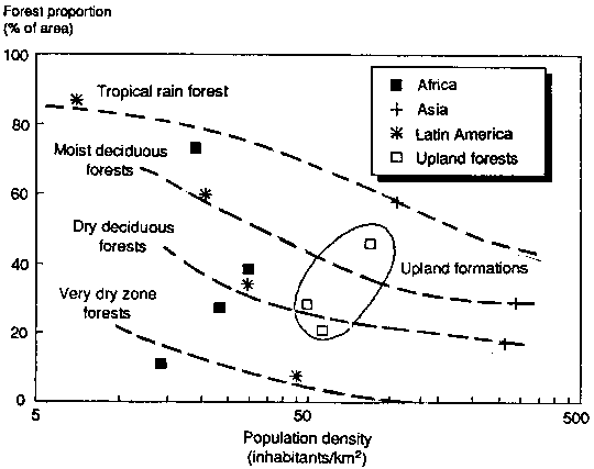 Figure 2. Forest proportions in relation to population density, by forest formations