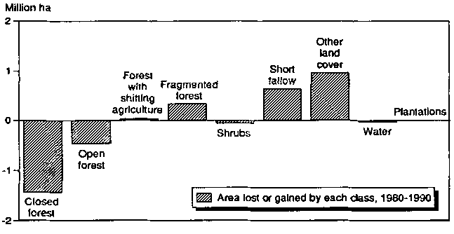 Figure 3. Changes in closed forest cover in Africa, 1981-1990