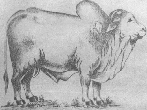 There is no clear picture of the various stages that went into the making of this breed of cattle. Carvings of the Nandhi bull, which adorn Hindu Sivaite temples in India, bear a true resemblance to the Ongole (Figure 3). From this it can be seen that the characteristics of this breed were fairly fixed even at the beginning of recorded history.