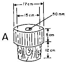 · Wooden stopper (A). This fits into the neck of the clay pot. It holds the agitator in position and prevents the milk from spilling.· Clay pot (B). A gourd may also be used. The size of the clay pot or gourd may vary with the amount of milk available. The container should not be filled more than halfway.