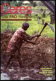 Published bi-monthly by the Food and Agriculture Organization of the United Nations. ISSN 0009-0379. The opinions expressed by the contributing authors are not necessarily those of FAO or Ceres. The designations employed and the presentation do not imply the expression of any opinion whatsoever on the part of the Food and Agriculture Organization of the United Nations concerning the legal status of any country, territory, city or area or of its authorities, or concerning the delimitation of its frontiers or boundaries. Individual articles and photographs not copyrighted may be reprinted provided the credit line reads: "Reprinted from Ceres, the FAO Review", and two voucher copies are sent to the Editor. Unsolicited manuscripts and art work not accompanied by return postage will not be returned.