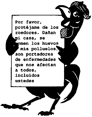 Las pruebas realizadas con diversos cebos venenosos (Cuadro 2) demuestran que cuando abundan tanto el alimento en los comederos como los huevos y los pollos, los roedores tienen menor inclinación a comer alimentos envenenados. La lucha contra los roedores rinde más después de la venta de las aves, cuando el gallinero está vacío y los roedores son más activos.