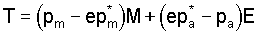 Since agriculture is the only sector producing traded goods, and since the price of non-tradeables was normalized to equal one, the price pa in equilibrium could also denote the real exchange rate, namely the relative price of tradeables to non-tradeables.