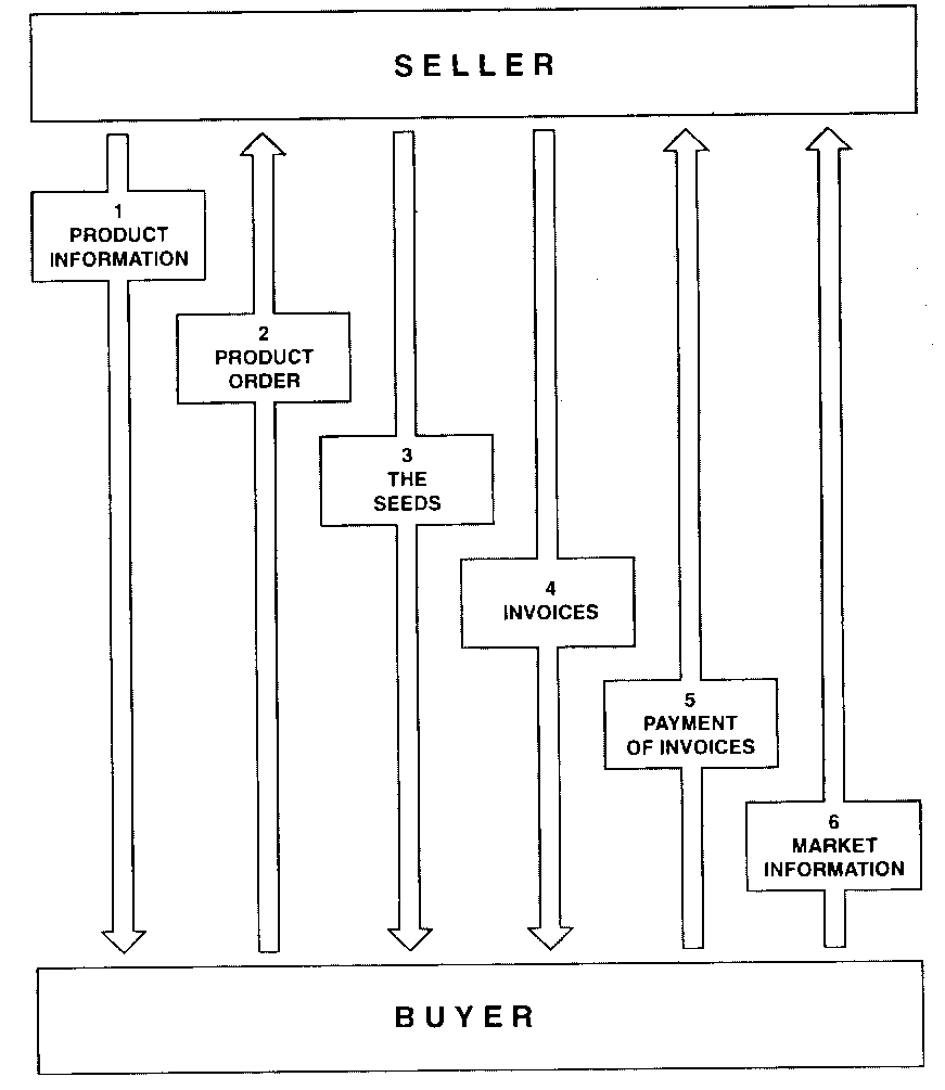 Reference has been made to the fact that useful marketing information can be generated from invoices. Sales administration generates management control information, such as sales progress and stock update reports, and triggers action if stock shortages develop in the distribution system. The importance of accurate stock control and record-keeping throughout the system should not be underestimated. This should include seed at all stages of bulk storage, processing and awaiting sale. Information that may effect planning, e.g. the effect of drought, the timing of rains or possible disruption to the transport system must also flow in from the sales regions. Obviously, good communications are vital if the system is to respond quickly to potential sales opportunities.