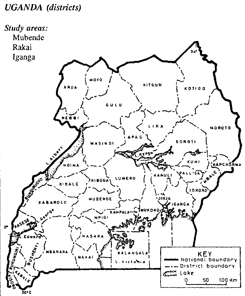 Hunter, S., Bulirwa, E. and E. Kisseka. 'AIDS and Agricultural Production: Report of a Land Utilization Survey, Masaka and Rakai Districts of Uganda' Draft submitted in Land Use Policy, 1993.