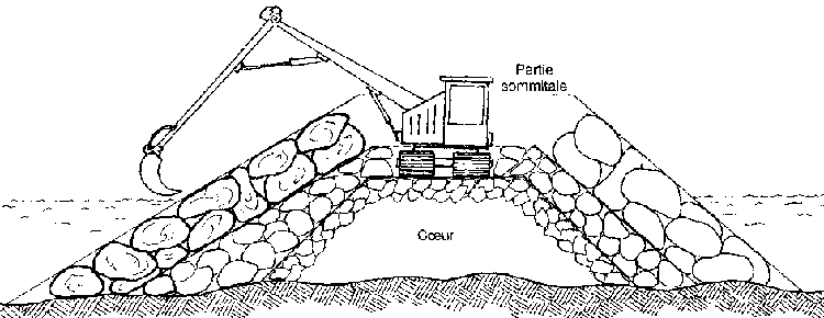 Un brise-lames type consiste en un remblai de cailloux grossiers (on parle aussi de «cur») recouvert ou protégé par des couches de pierres plus lourdes (figure 30).