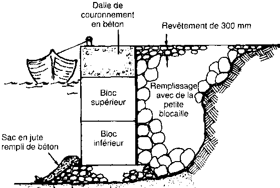 Figure 39 Détails caractéristiques d'un quai en sacs de jute aménagé