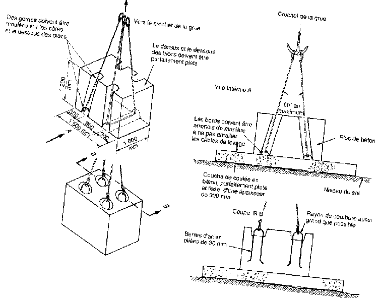 Figure 37 Dimensiones types des blocs et méthodes de levage