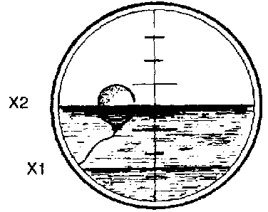 La figure 27a montre l'image perçue à travers l'oculaire du théodolite par temps parfaitement calme, la base de la bouée se trouvant juste au-dessus du réticule central.