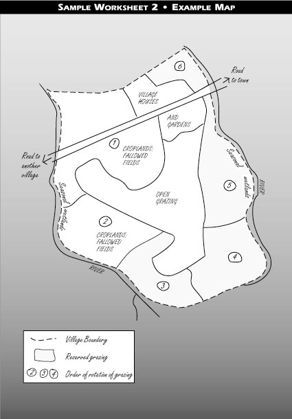 In addition to the map, it is useful to get a description of the land use system from community members and leaders. The worksheet in this section is a short checklist that provides the description of the map which the community has prepared in the preceding section.