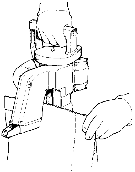 Flours should be carefully filled to ensure that dust is minimised and that the amount in the sack is the same as the net weight described on the label. In most countries it is an offence in law to sell an under-weight product and over-filling means that the company is giving away product at a loss. A large capacity scale (eg 100kg) may be used if the product is filled by hand. Alternatively semi-automatic bagging machines, in which a weighed amount of product is discharged into an open sack, may be cost-effective for larger scale mills. Sacks are then sealed by either tying the neck with rope or by stitching the top of the sack using a stitching machine (Figure 13: An electric sack stitcher).