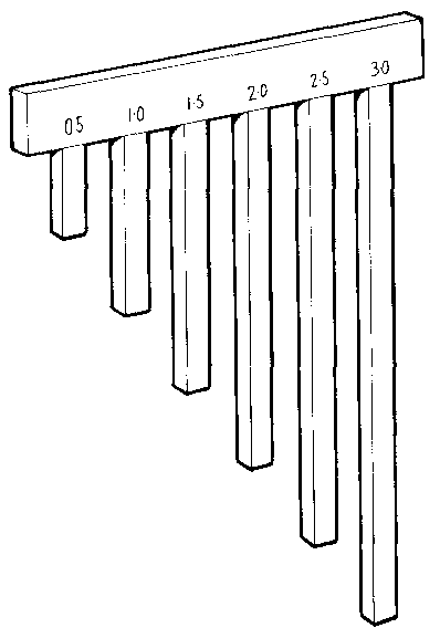 A headspace gauge (Figure 39 : A headspace gauge used to check the depth of a headspace) is a cheap and simple way of routinely checking that product has been filled to the correct level. It consists of a series of prongs of different lengths fixed onto a bar and it is placed on the rim of the jar before fitting the lid. The level of product may then be seen where it touches one of the prongs. Alternatively a device (Figure 40: A simple way of ensuring a consistent headspace) can be fitted into the production line to maintain a uniform headspace.