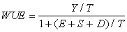 With the water and soil resource being finite, the only options for increasing biomass production in rainfed dryland agriculture is to increase the water productivity, i.e. the water use efficiency (WUE), by producing more biomass per unit of water. This is clearly illustrated by using Gregory's (1989) definition of WUE (Equation 1), based on the actual rainwater supplied (yield per unit of water supplied), and which takes into account all the water flows of the hydrological cycle involved in biomass production. This expression of WUE is motivated by the large water losses in dryland agriculture due to the erratic and unpredictable rains combined with physically fragile, crust-prone soils, which result in large water "losses" in the form of surface runoff (S) and deep percolation (D).