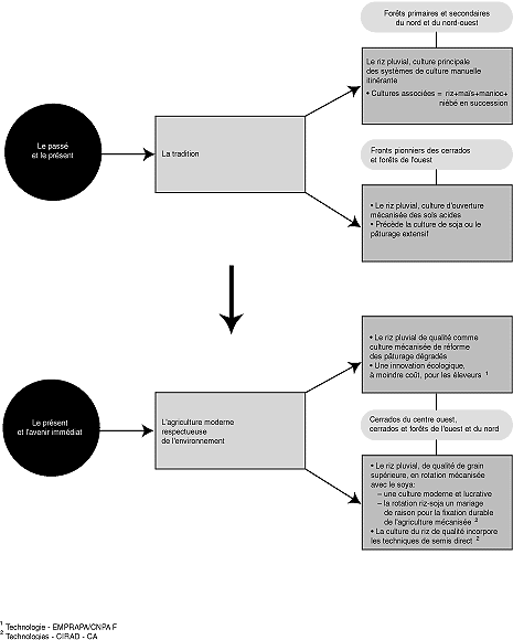 Las investigaciones realizadas por el CIRAD-CA y sus asociados brasileños entre 1978 y 1995 muestran el camino hacia el progreso de la tecnología del arroz de secano mediante un enfoque centrado en las explotaciones agrícolas que integra el mejoramiento de las variedades con sistemas de cultivo para los agricultores.