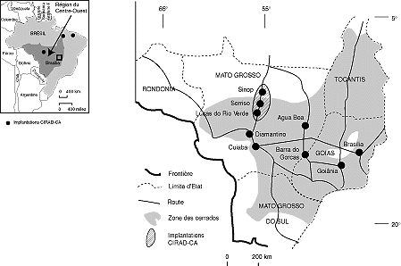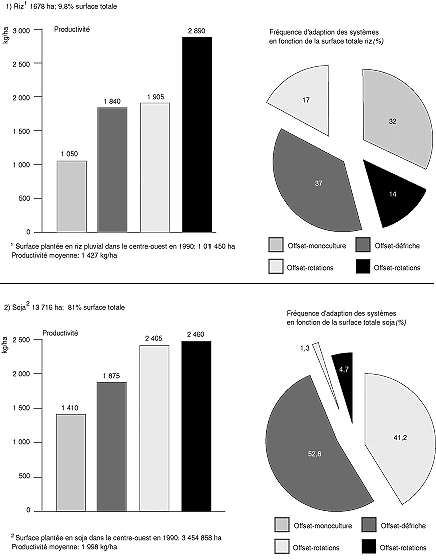 Dans l'Etat du Mato Grosso, la riziculture pluviale dominante est pratiquée depuis le début des années 70 par des grands agriculteurs, en système mécanisé, à la fois comme culture d'ouverture des terres des fronts pionniers et, plus récemment, comme culture de rotation du soja (Séguy, Bouzinac et al., 1993; Séguy, Bouzinac et al., 1994). Plus de 200 000 ha sont cultivés en région classée comme hautement favorisée (EMBRAPA, 1992).