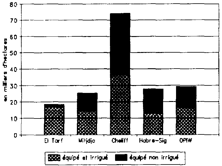 L'Algérie a formulé au début des années 90 un vaste programme de réhabilitation et d'extension des périmètres existants, qui devrait porter la superficie totale équipée et irriguée en maîtrise totale et partielle dans le nord du pays à 500 000 ha en 2010.