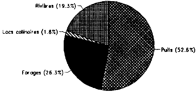 FIGURE 7 Origine de l'eau d'irrigation pour les surfaces en petite et moyenne hydraulique 11992)