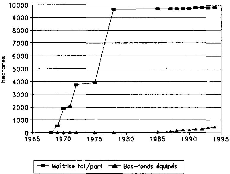 | 3. Marais et bas-fonds équipés | 1994 | 450 | ha |