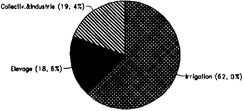 FIGURE 1: Prélèvements en eau (total: 0,376 km³ en 1992)