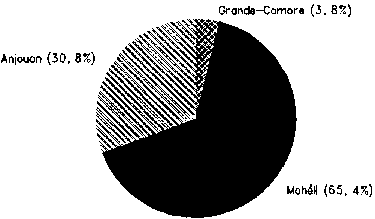 La population était estimée à 446 817 habitants en 1991; elle est à 72% rurale. Le taux de croissance de la population est évalué à 3,3 %. La densité est de 240 hab./km², mais varie approximativement entre 84 hab./km², à Mohéli, 233 dans la Grande-Comore, et plus de 445 à Anjouan.