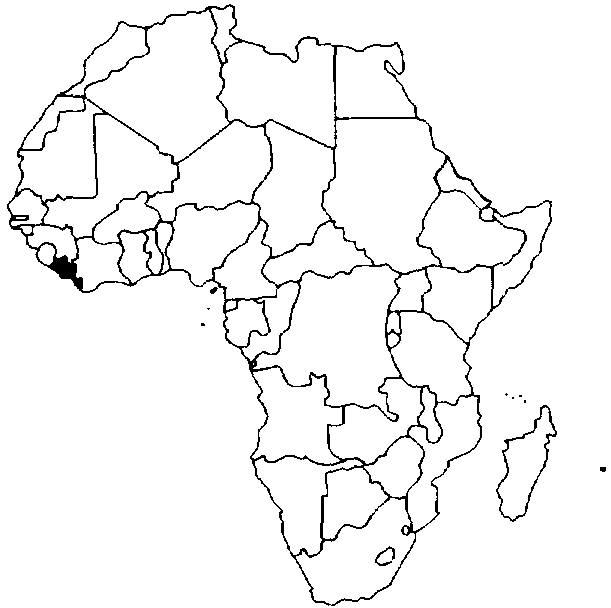 Liberia, located in the southwestern part of West Africa, covers an area of 97 750 km². The country can be divided according to elevation over sea level into four main physical regions parallel to the coast: coastal plains up to 100 m, hills from 100 to 300 m, plateaus from 300 to 600 m, and mountainous areas above 600 m. The cultivated area was estimated at 538 000 ha in 1986, which is 5.5% of the total area.