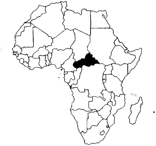 La République centrafricaine, pays enclavé au coeur de l'Afrique, a une superficie totale de 622 980 km² En 1994, la population était estimée à environ 3,2 millions d'habitants, soit une densité moyenne de 5 hab./km² La population est à 53% rurale et le taux de croissance démographique est de 2,4% par an. Le secteur agricole représente 42% du PIB et occupe près de 80% de la population.