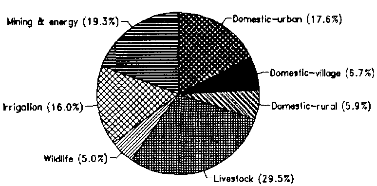 FIGURE 1: Water withdrawal (total: 0.11 km³ in 1992)