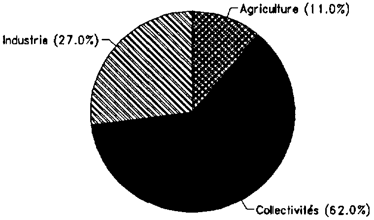 FIGURE 1: Prélèvements en eau (total: 0,04 km' en 1987)