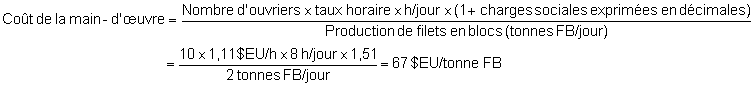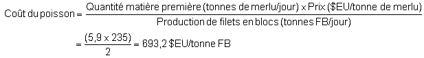 = Quantité de matière première (tonnes de thon/jour) × Prix ($EU/tonne de thon) |