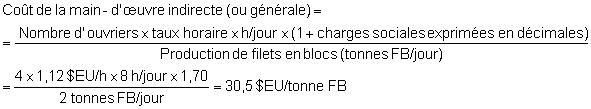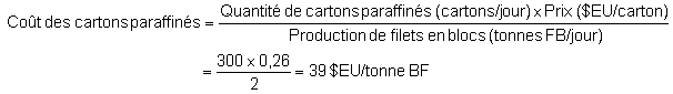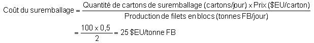Coûts commerciaux = 0,024 × Coût direct = 0,024 × 1 634,3 $EU/jour = 39,2 $EU/tonne FB