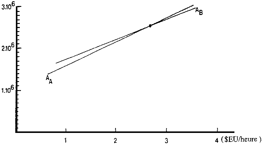 AA = AB1 093 144 + 530 690 × CL = 1 227 747 + 484 600 × CL, donc CL = 2,92 $EU/h