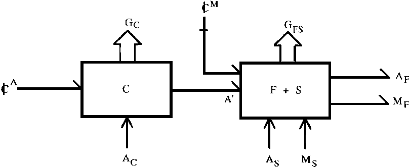 Maintenant que le problème a été posé de cette manière, il est manifeste qu'il existe des possibilités infinies pour la distribution de la matière première parmi les différentes usines. L'utilisation de la technique de Programmation Dynamique permet une combinaison optimale de variables pour chaque valeur d'intrant de matière première. Le principe d'optimalité de Bellman indique que la dernière étape (salage et congélation) doit être optimisée en fonction de l'approvisionnement reçu pour les variables A' et CM. Cela signifie que la valeur de As et Ms qui maximalise la fonction partielle d'objectif GFS pour une valeur quelconque de CM et A' est optimale.