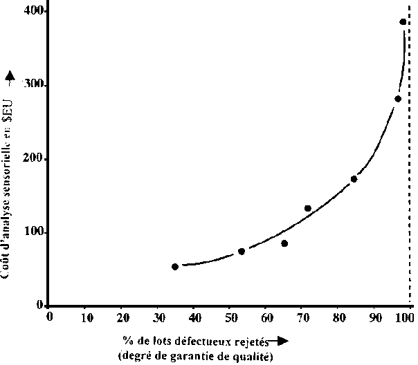 Néanmoins, il est évident que le zéro défaut, et par conséquent le risque zéro, est économiquement impossible (Figure 8.2). Le zéro défaut, comme déjà souligné, est aussi un objectif irréaliste. "Aucune activité humaine concernant l'alimentation et la boisson ne peut et ne pourra jamais être exempte de dangers. Par conséquent, par définition, une situation de risque zéro ne peut pas exister" (Mossel, 1989).