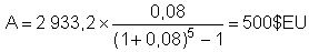 On souhaite réunir 2 933,2 $EU par une série de cinq paiements annuels, à 8% d'intérêt par an, quel est le montant nécessaire pour chaque paiement?