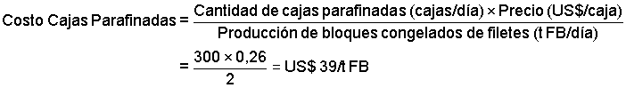 = Cantidad de cajas de cartón (cajas/día) × Precio (US$/caja) = |