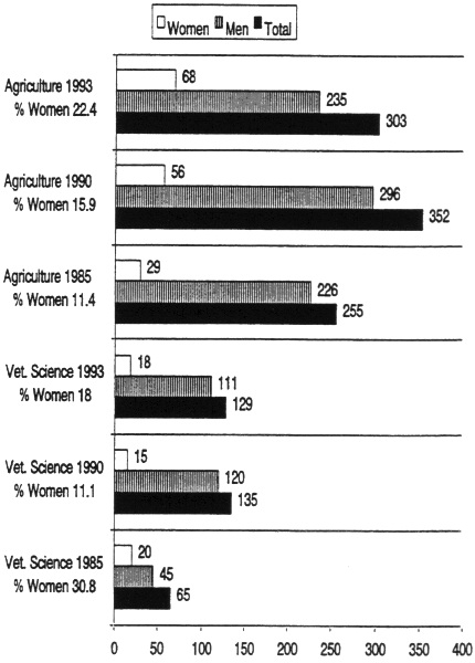 Until the mid-1980s, the majority of agricultural training institutes did not have facilities for women. Since then, there has been a gradual increase in women's enrolment. In 1988, only 7.77% of extension staff were women. More recent data is needed.