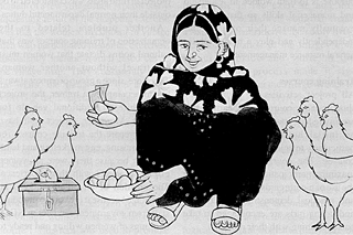 Dessin utilisé pour promouvir l'élevage des volailles par les femmes